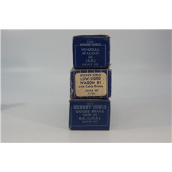 Continuing with OO gauge rolling stock, the set of three Dapol wagons provides a nice variety for your freight operations. You get an SR conflat with container, a BR cattle wagon, and a high steel sand wagon. Moving across to the Continent and HO gauge, the Roco train set featuring the BLS electric locomotive with four passenger coaches is an absolute gem. This commemorative set marks the 100th anniversary of the Bern-Lötschberg-Simplon-Bahn and is in "as new" condition. Finally, for you O gauge enthusiasts, there's a pair of Parkside wagons that are in excellent nick: a Southern Railways 25-ton goods brake van and a private owner RCH 1923 pattern 7-plank mineral wagon that's been thoughtfully loaded with real coal. The seller's even added extra weight under the chassis, including a couple of 1963 sixpences for good measure!